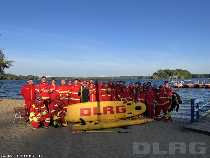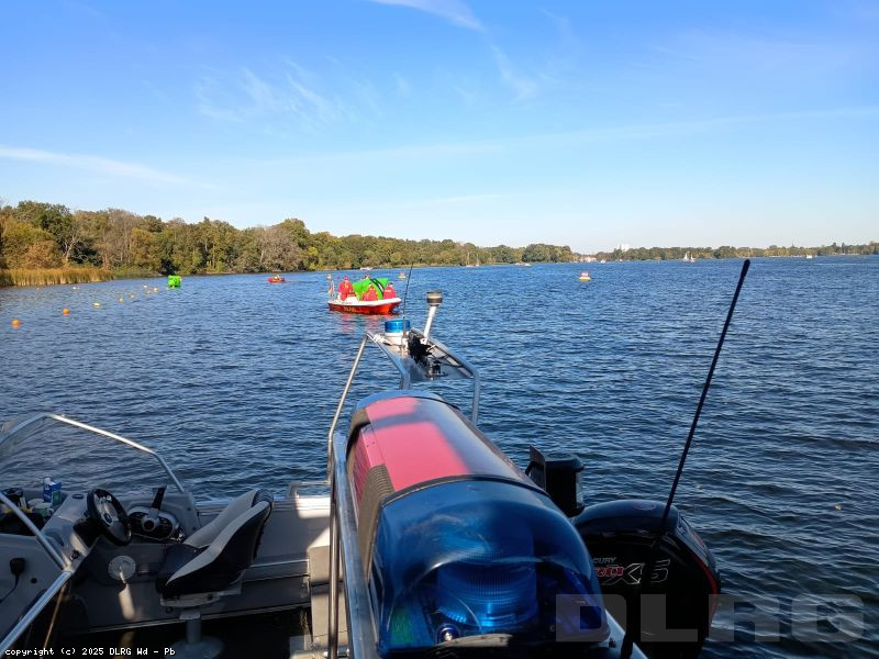 Mit sieben Booten und zwei SUPs haben unsere Kamerd:innen der Oberhavel und aus Treptow-Köpenick die Schwimmenden beim TegelSwim begleitet und sechs erschöpfte aus dem Wasser geholt.